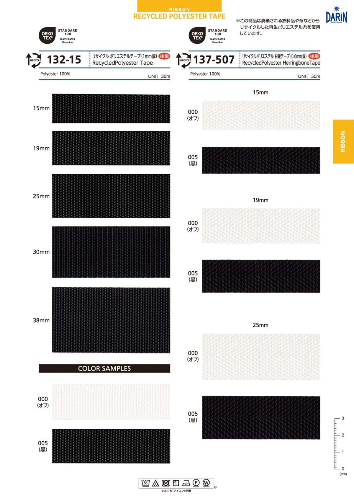 リサイクルポリエステル テープ(1mm厚)/ リサイクルポリエステル 杉綾テープ(0.6mm厚)