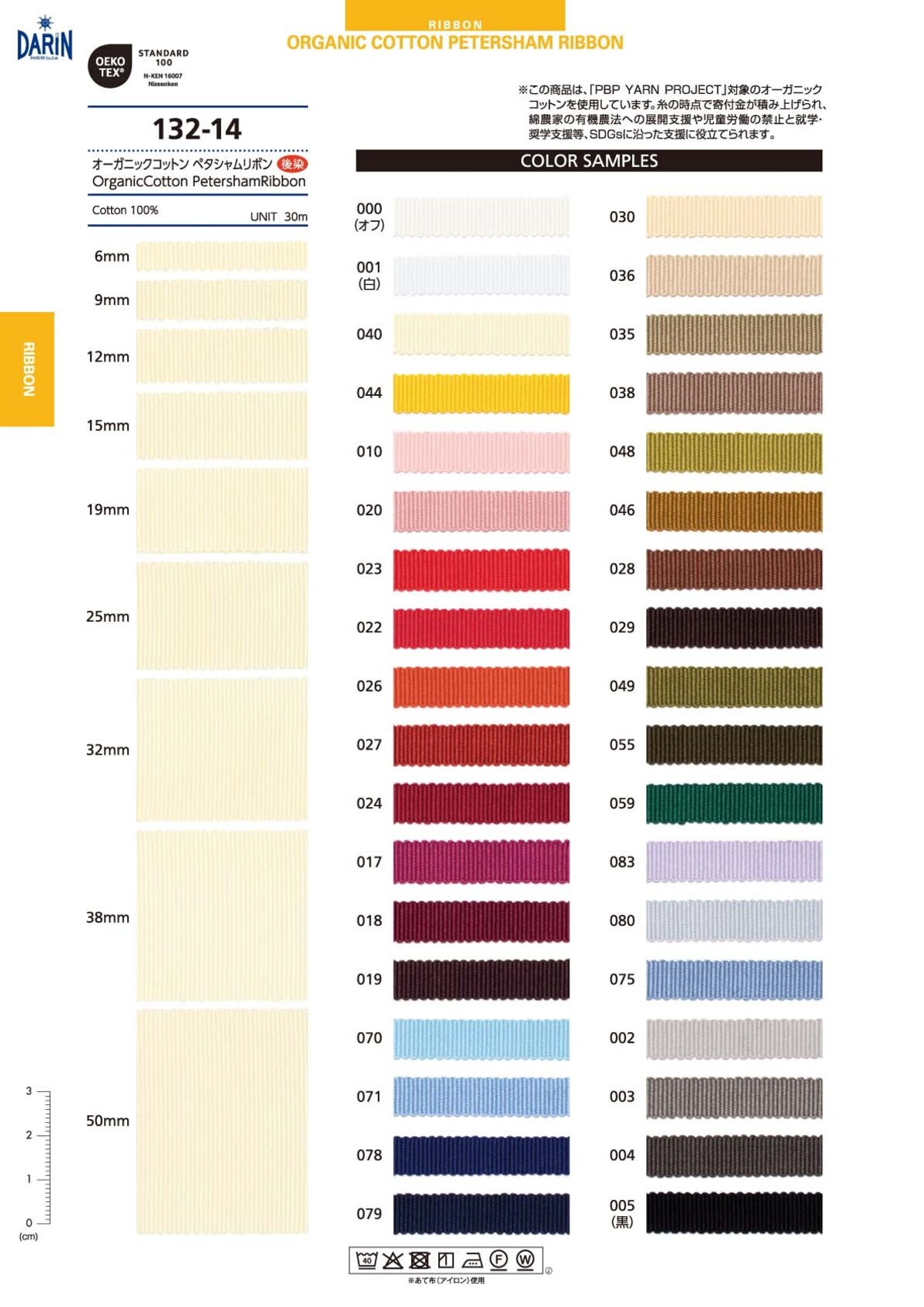 オーガニックコットン ペタシャムリボン