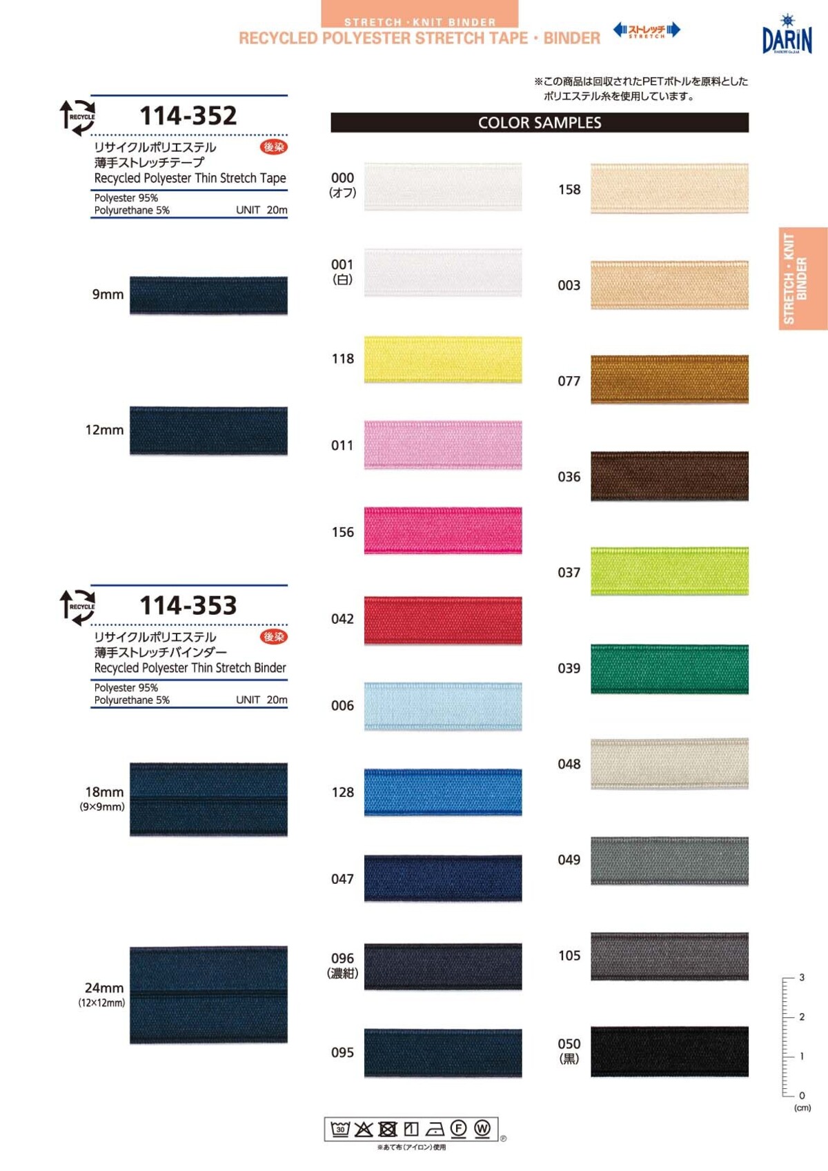 リサイクルポリエステル 薄手ストレッチ テープ/バインダー